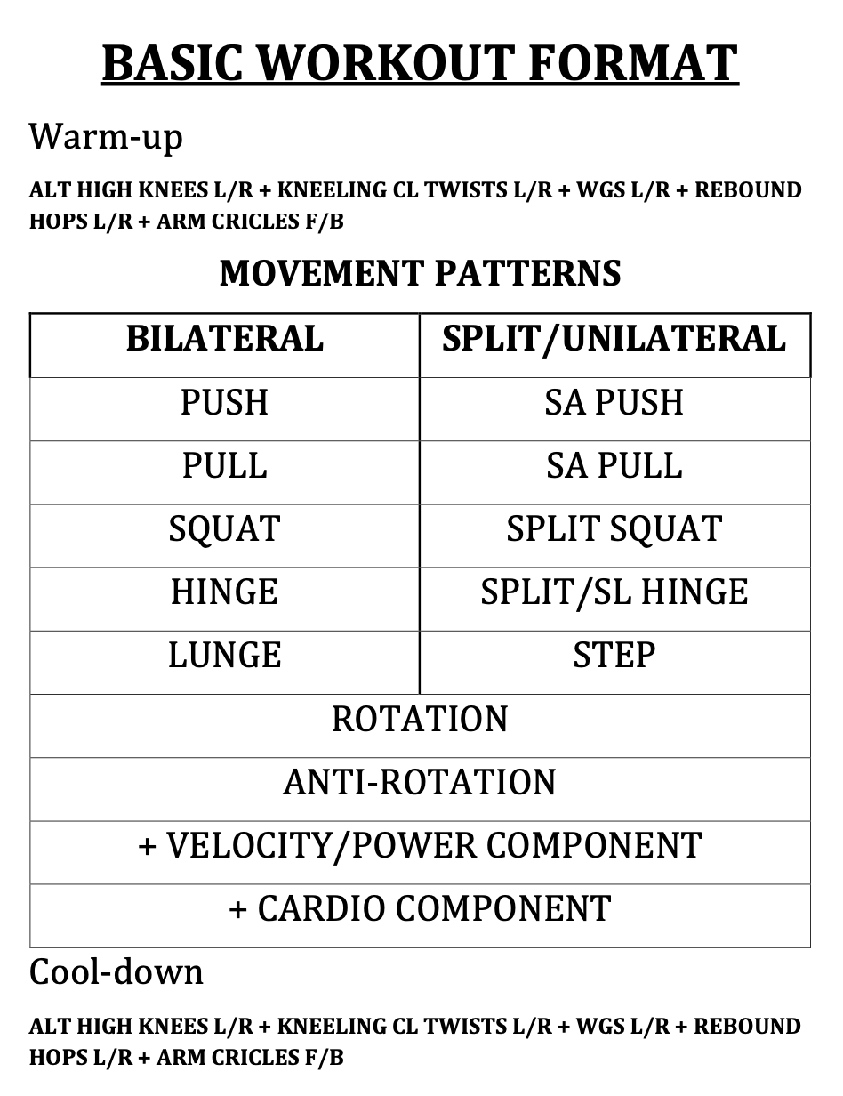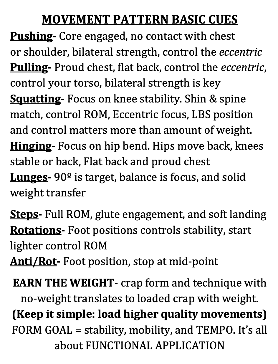 Cont. intro to basic movement patterns including unilateral variations